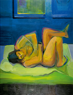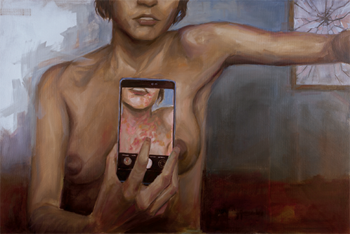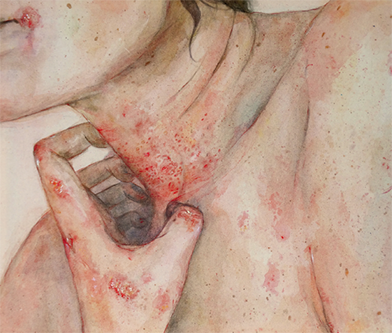 Obra que muestra la vergüenza y el aislamiento que el picor produce en la persona afectada de dermatitis, llegando a provocar momentos de gran desesperación.