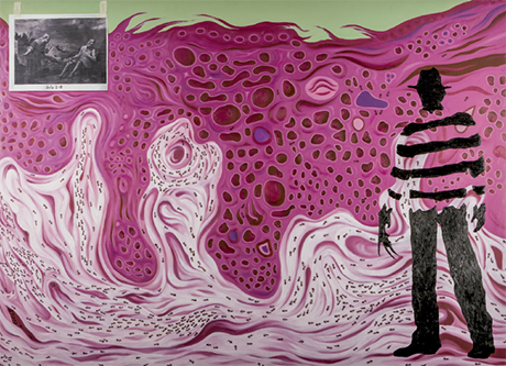 En este trabajo se han reunido una serie de imágenes de distintos contextos, la imagen predominante remite a la parte clínica, y a ésta se suman una reproducción de una impresión en una hoja de papel, de la pintura de Bartolomé Esteban Murillo titulada “La paciencia del santo Job” y una silueta en negro extraída de una película de terror de los 80’s. Para conformar una pintura que plantea el PICOR insoportable que padecen los afectados por la Dermatitis Atópica grave.
