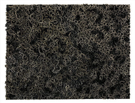 Al igual que la piel, “Under” es una obra viva en la que las tonalidades negras de la tinta utilizada varían sus texturas al ritmo del tiempo.